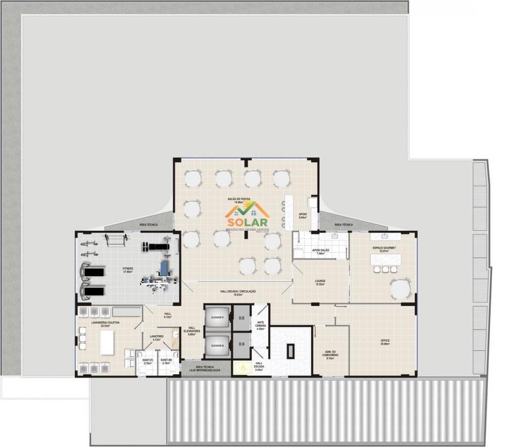 As áreas comuns do condomínio oferecem diversas comodidades, como piscina, sala de academia, salão de festas, salão gourmet, churrasqueira e portão eletrônico, proporcionando aos moradores um estilo de vida confortável e completo.